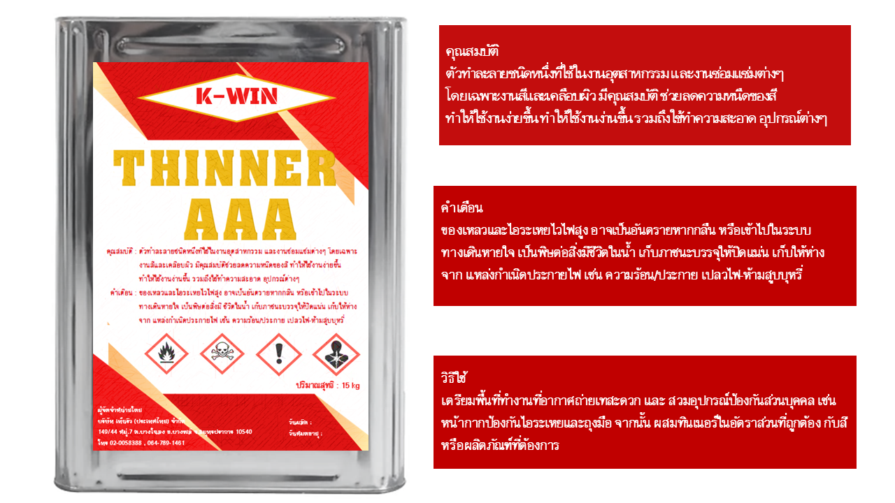 - ตัวทำละลายชนิดหนึ่งที่ใช้ในงานอุตสาหกรรม และงานซ่อมแซ่มต่างๆ